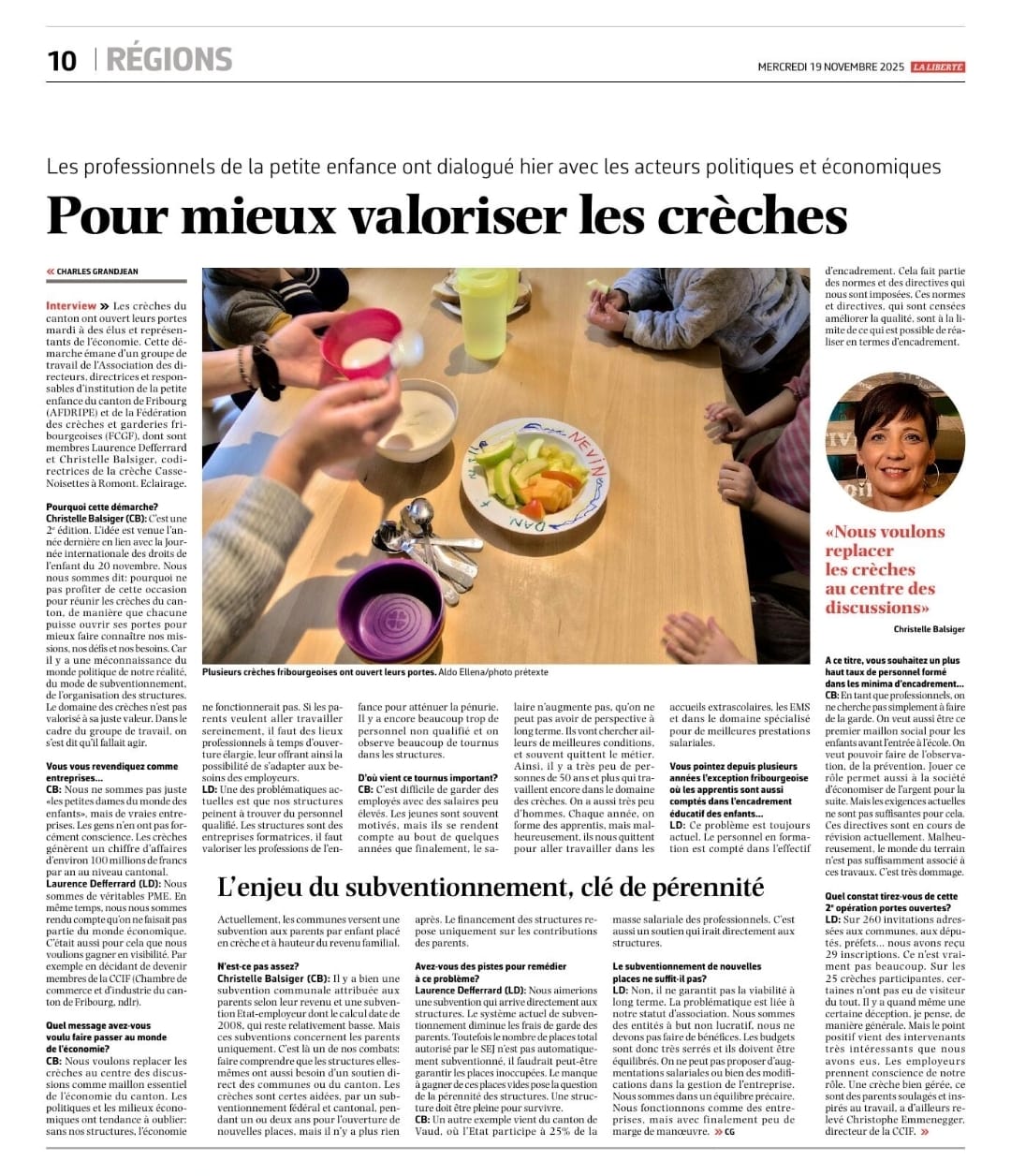 Découvrez la Réalité du Terrain dans les Crèches du Canton de Fribourg !